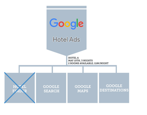 Το Google Hote lAds(GHA) είναι μια πλατφόρμα που αποτελείται από ξενοδοχεία και τιμές, η οποία διανέμεται σε όλα τα σχετικά προϊόντα της Google όπως η μηχανή αναζήτησης, οι χάρτες και το νέο Google Destinations. Βέβαια κανείς δεν μπορεί να αμφισβητήσει ότι αυτές οι τιμές μπορεί αργά ή γρήγορα να εμφανιστούν και σε άλλες εφαρμογές της Google όπως είναι το Gmail. Δεν είναι η πρώτη φορά που η Google δημιουργεί ένα τέτοιο εργαλείο. Στο παρελθόν η Google είχε δημιουργήσει το Google Hotel Finder- ένα εργαλείο σύγκρισης τιμών, το οποίο όμως σταμάτησε την λειτουργία του τον Σεπτέμβρη του 2015.