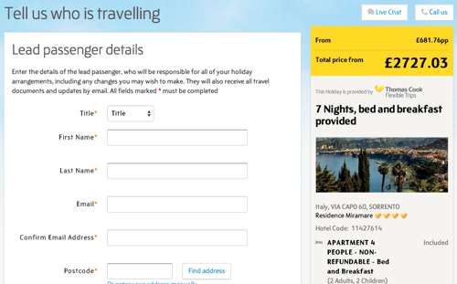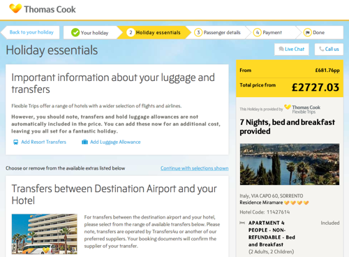 Βέβαια, το Thomas Cook περιμένει από τους ανθρώπους να επενδύσουν χρόνο και προσπάθεια για να εισάγουν τις πληροφορίες όλων όσων ταξιδεύουν, χωρίς να επιβεβαιώσουν το συνολικό κόστος.