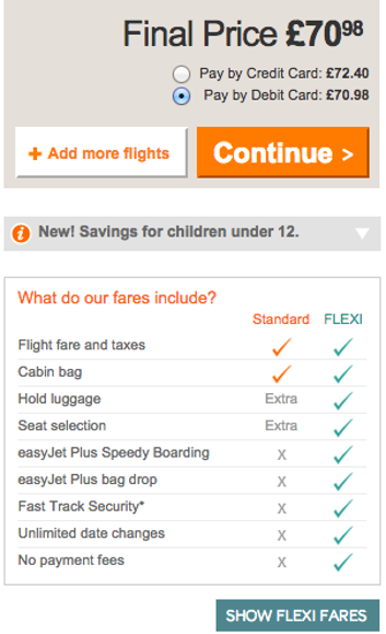 Σε αυτό το παράδειγμα η EasyJet είναι ξεκάθαρη για την κοστολόγησή της.